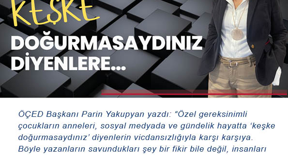 YazılarÖÇED Başkanı Parin Yakupyan yazdı: “Özel gereksinimli çocukların anneleri, sosyal medyada ve gündelik hayatta ‘keşke doğurmasaydınız’ diyenlerin vicdansızlığıyla karşı karşıya. Böyle yazanların savundukları şey bir fikir bile değil, insanları ‘istenenler’” ve ‘istenmeyenler’ diye ayırma hastalığı. Bir sosyal medya kullanıcısı şöyle yazmıştı “Bir test yaptırmalı ve bu çocuğu dünyaya getirmemeliydiniz. Açıkçası bana zarar verirse hiç umurumda […]