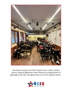 Bu anlamlı buluşma için Özel Esayan Lisesi müdürü Dença Çınar’a, biyoloji öğretmeni Tamar Kartun’a ve duyarlılıkları ile geleceğe umut olan tüm öğrencilere ve HUYS’a teşekkür ederiz.